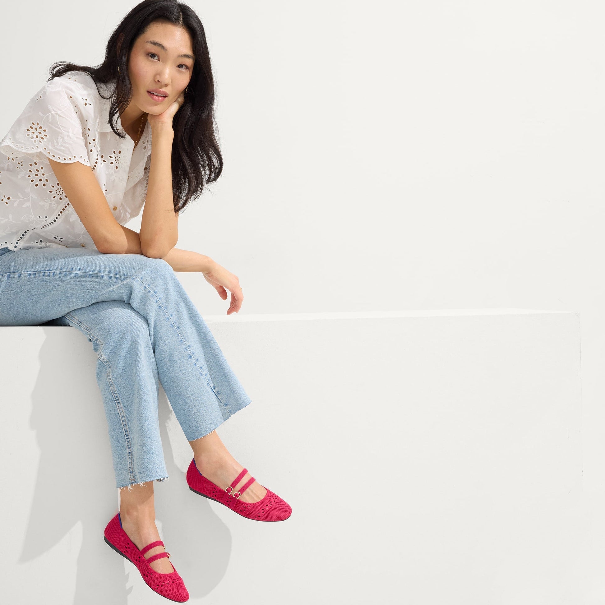 - Features two slim, flexible straps with adjustable buckles inspired by the Rothy’s signet.