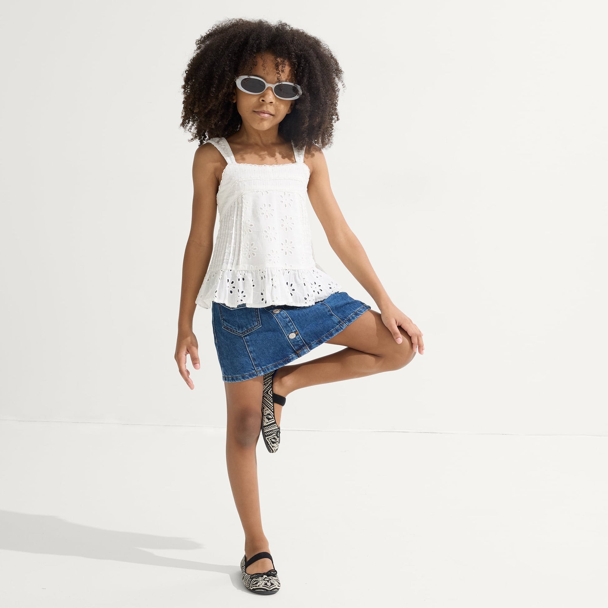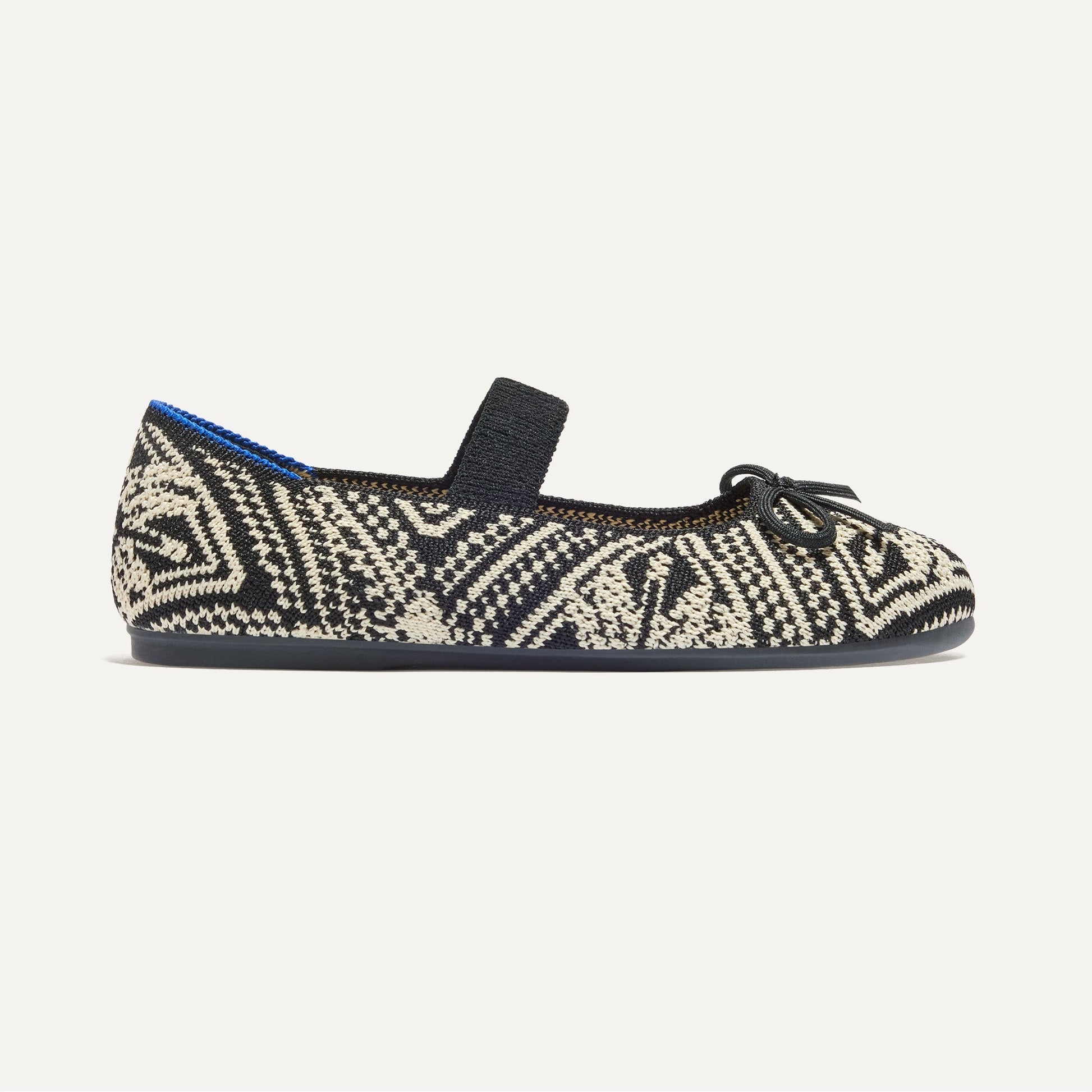 - Soft, flexible upper in black with an ivory geometric mosaic pattern.