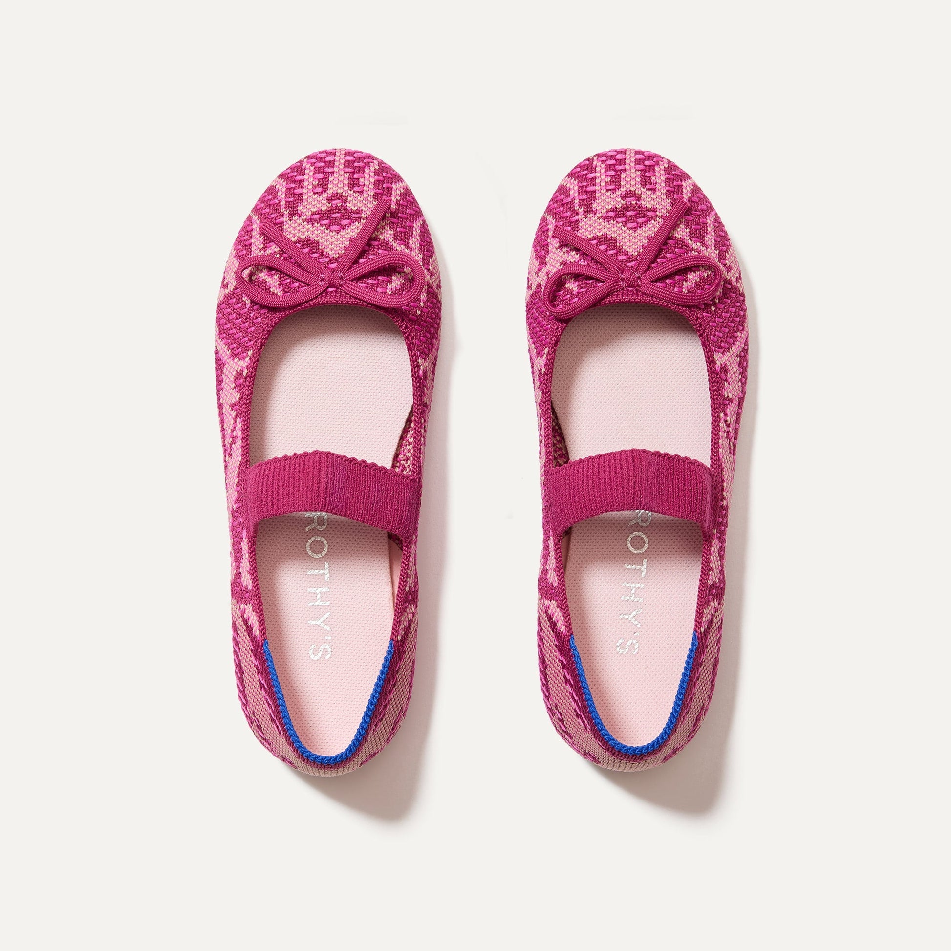 - Soft, flexible upper in blush pink with a magenta floral pattern.
