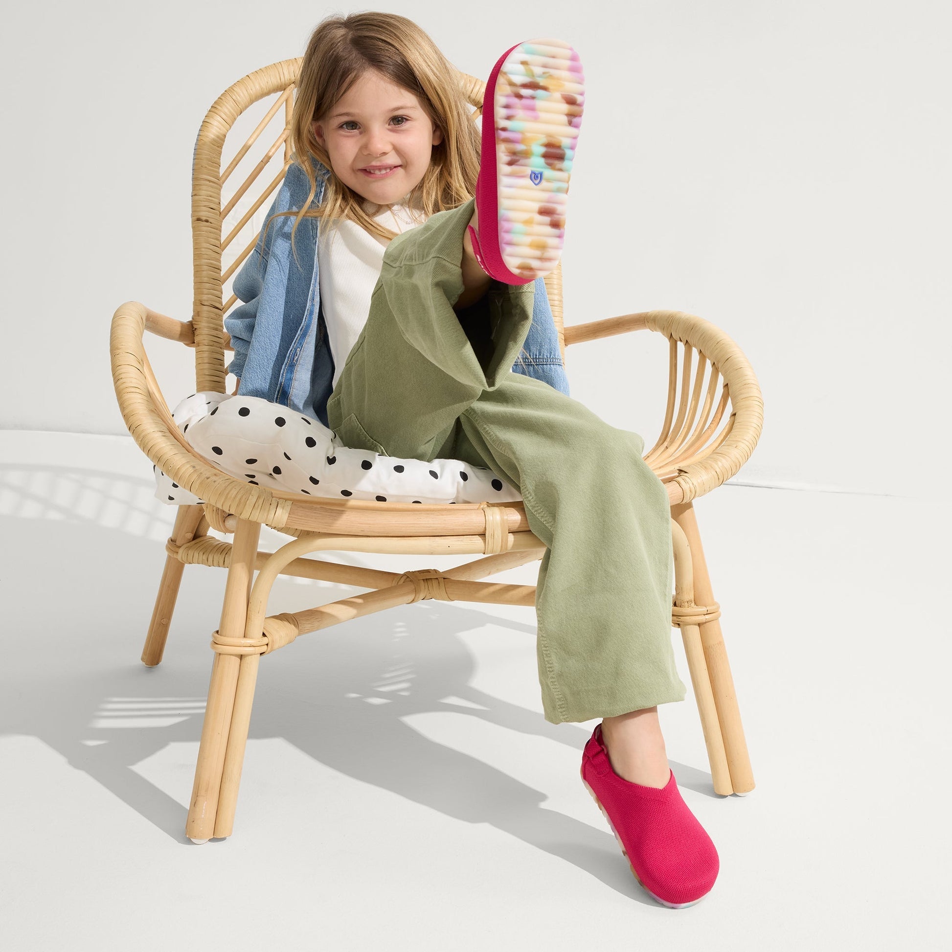 - Durable rubber outsoles in white with rainbow speckles with added traction.