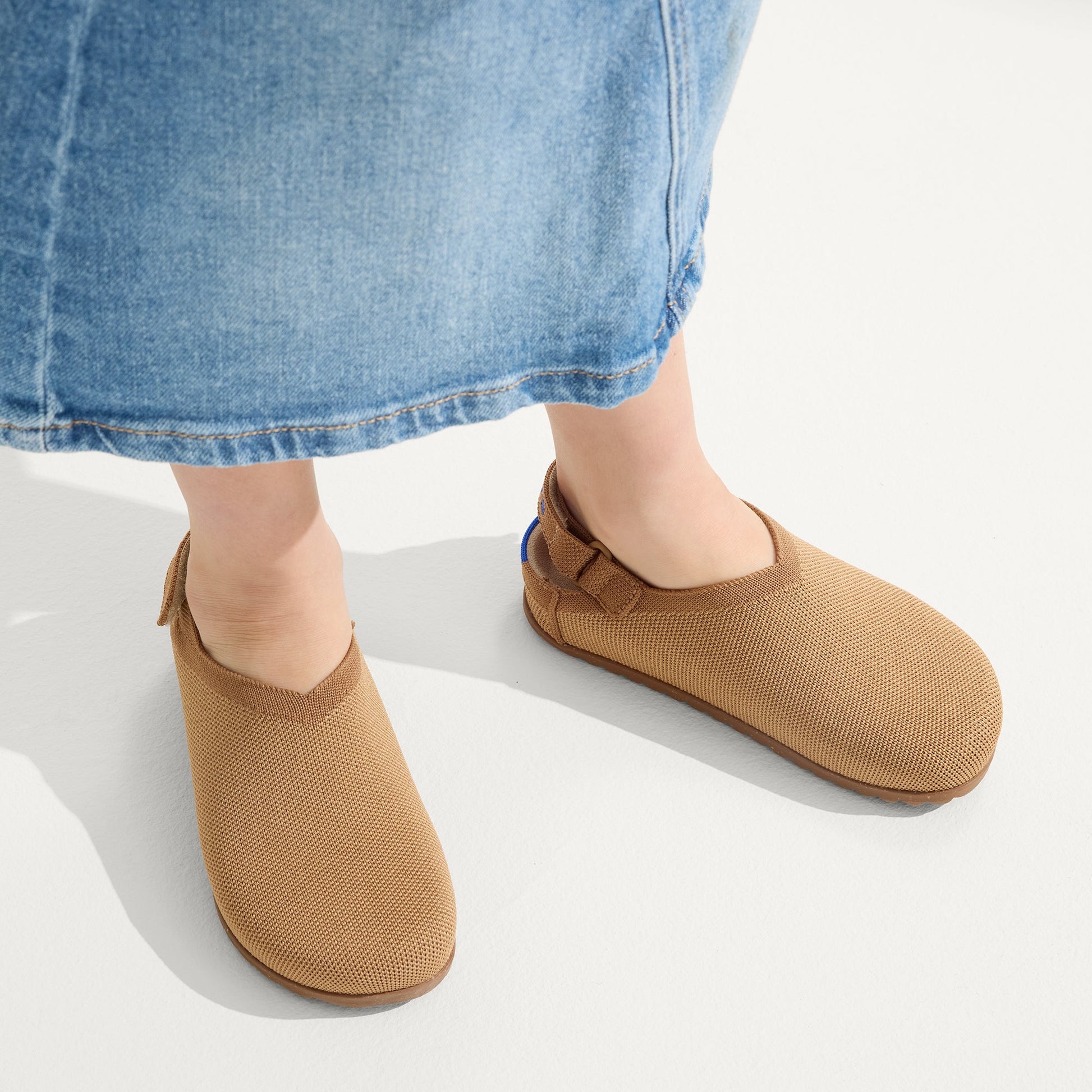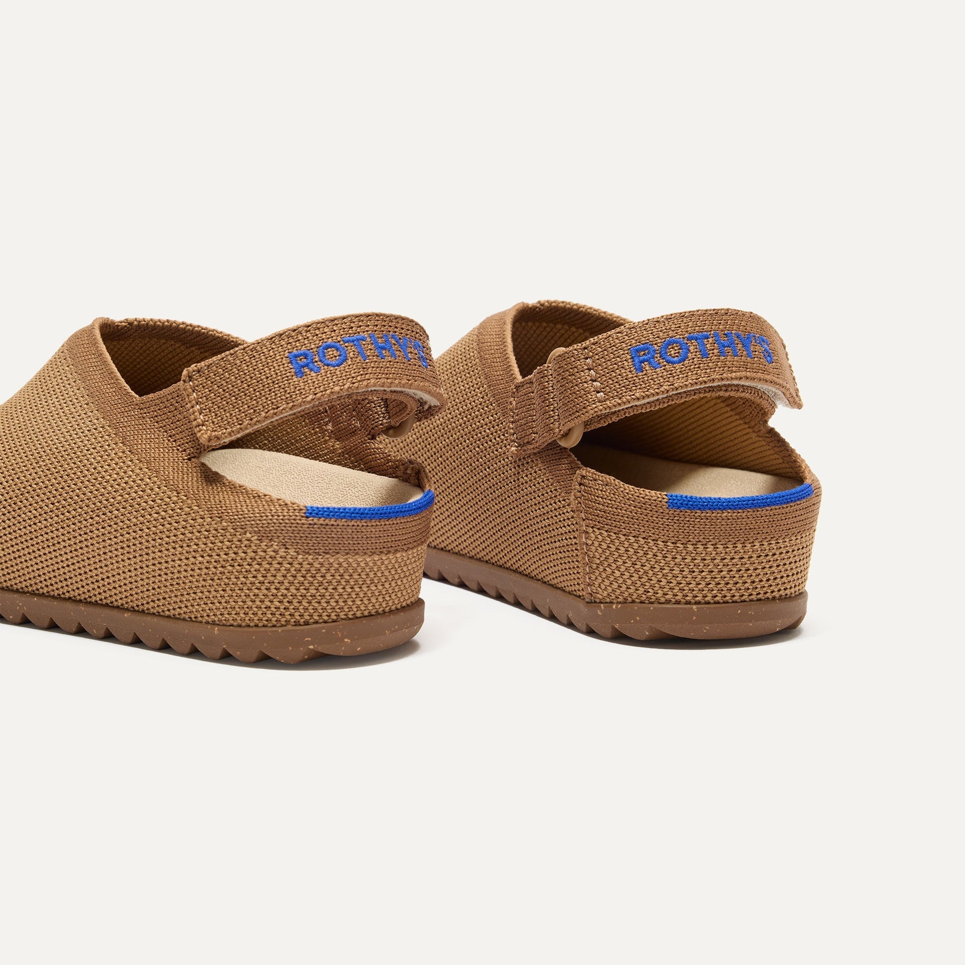 - Features a comfortable, adjustable hook & loop heelstrap in camel to keep their little feet secure.