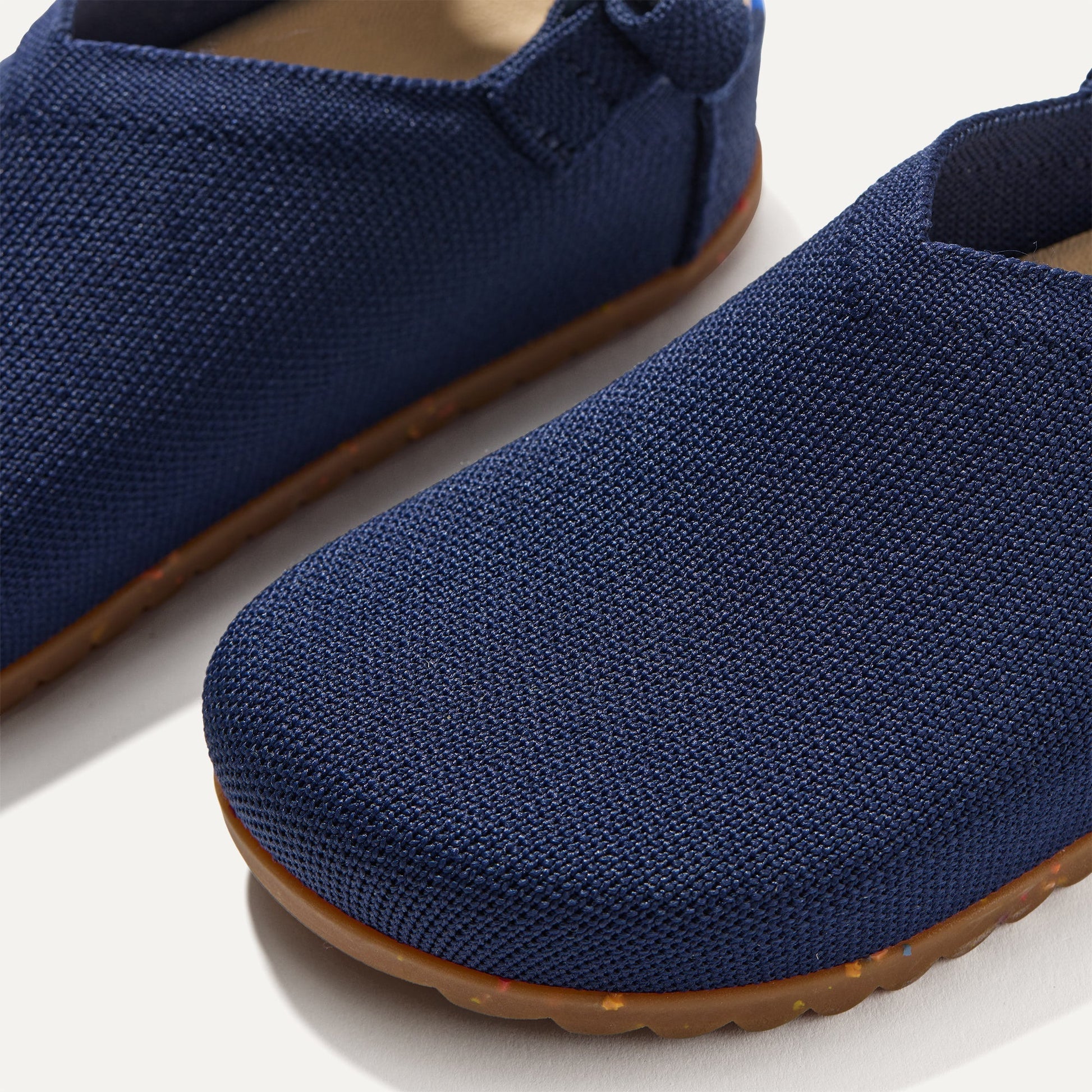 - Features a comfortable, adjustable hook & loop heelstrap in deep navy to keep their little feet secure.