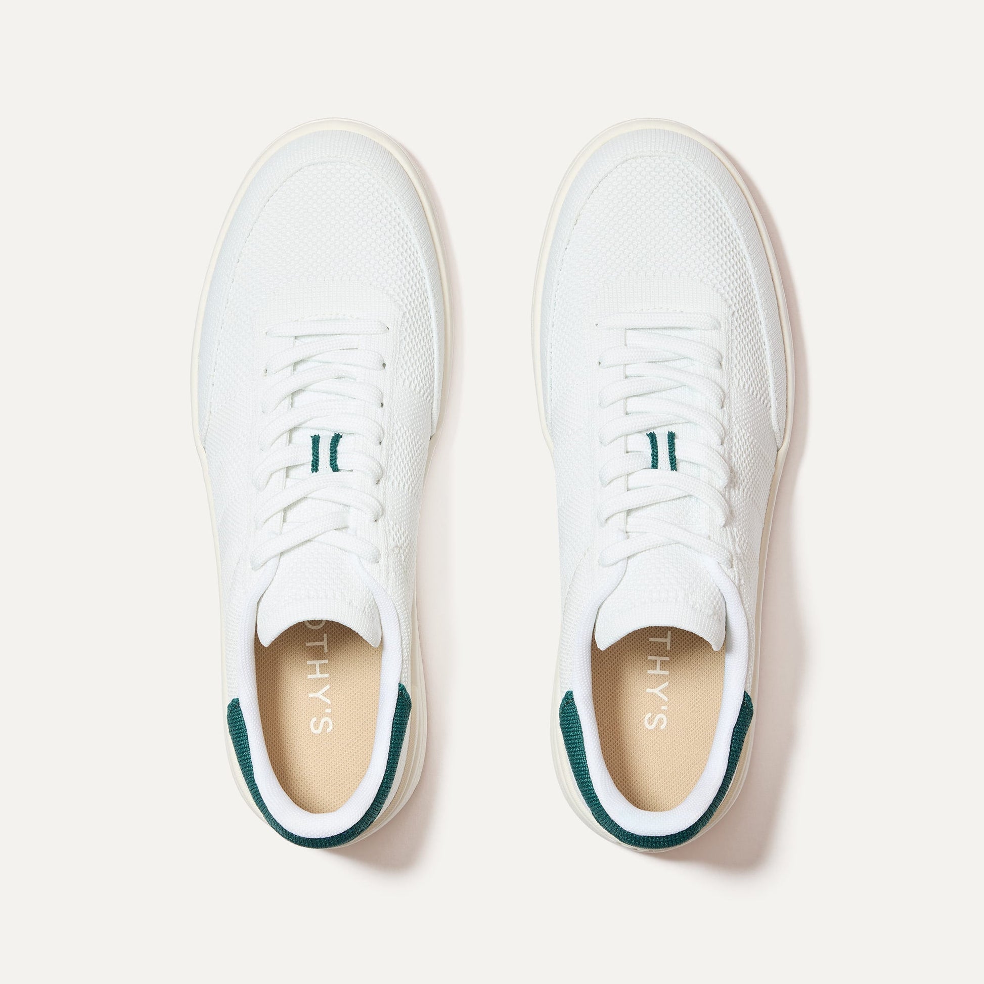 - Roomy, flexible upper in white and dark green.