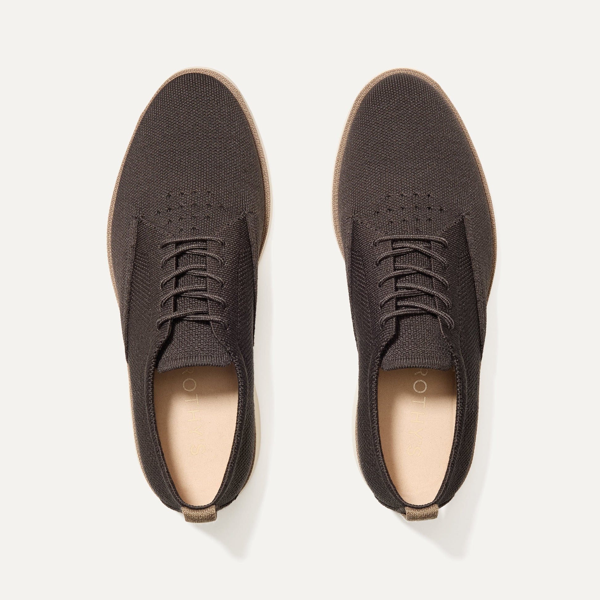 - Lightweight, Oxford-style upper in dark brown knit with a natural hemp blend.