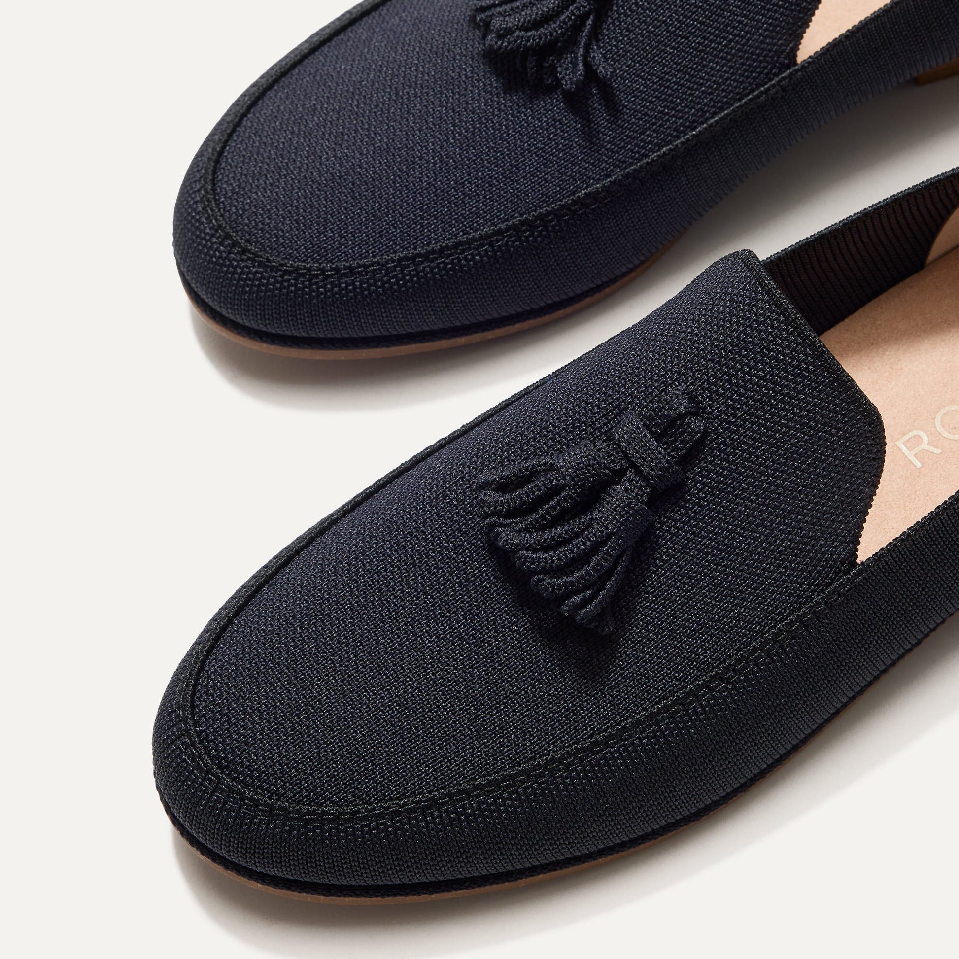 - Soft, flexible upper in black with a tassel embellishment on the vamp.