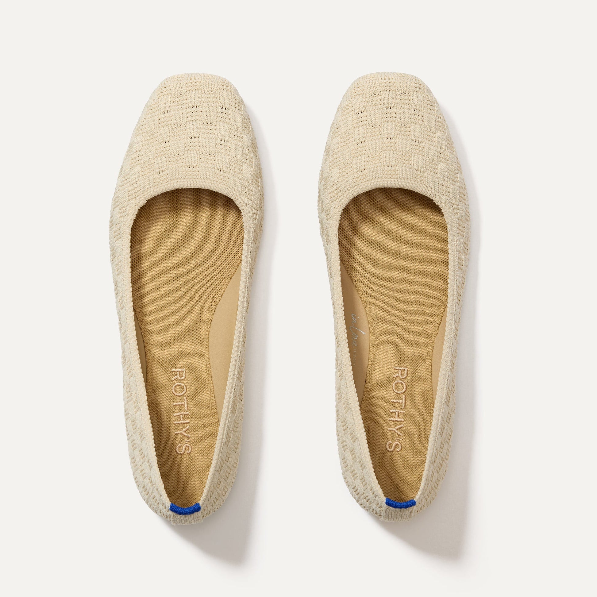 - Soft, flexible upper with a basketweave pattern in ivory.