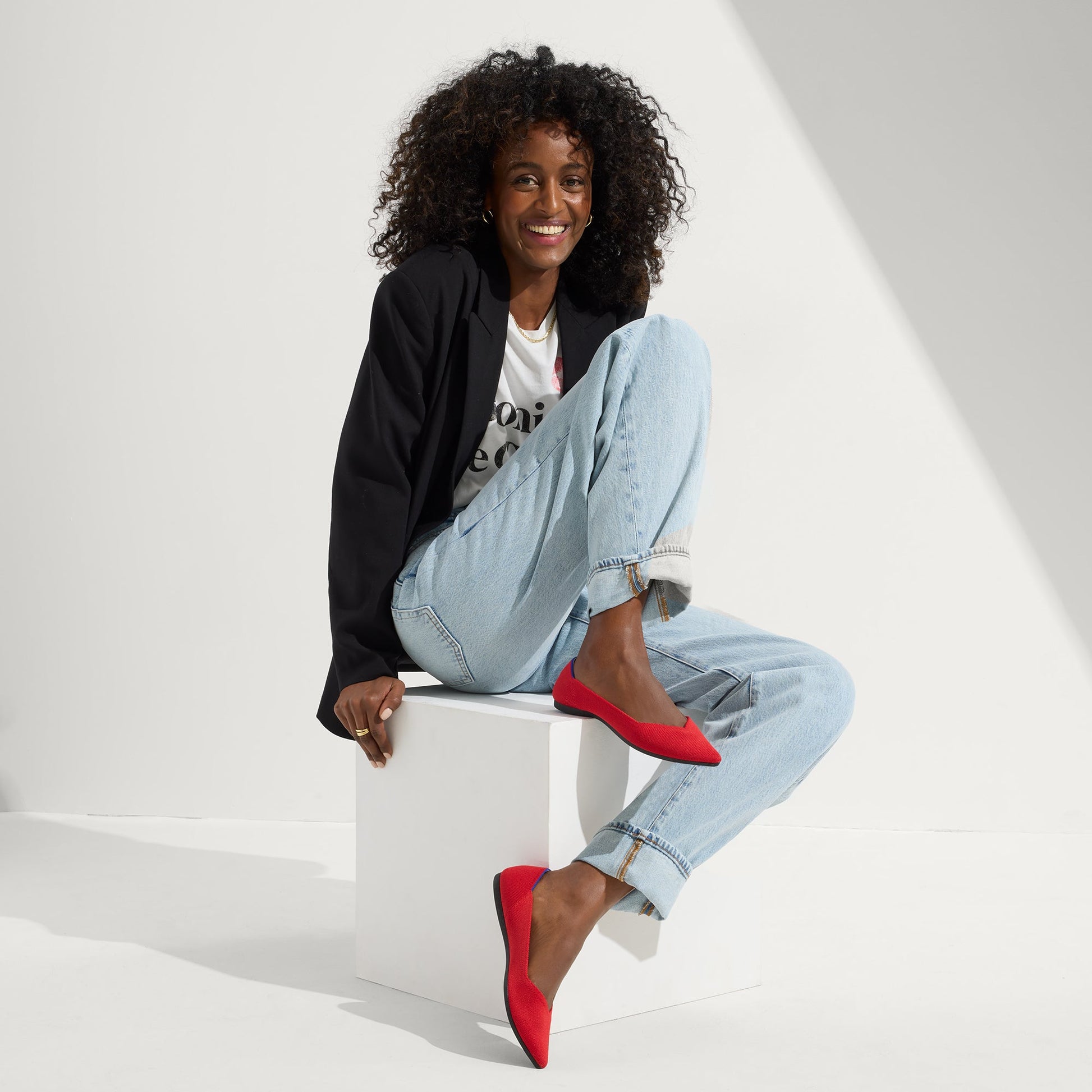 - Soft, flexible upper in bright scarlet red.