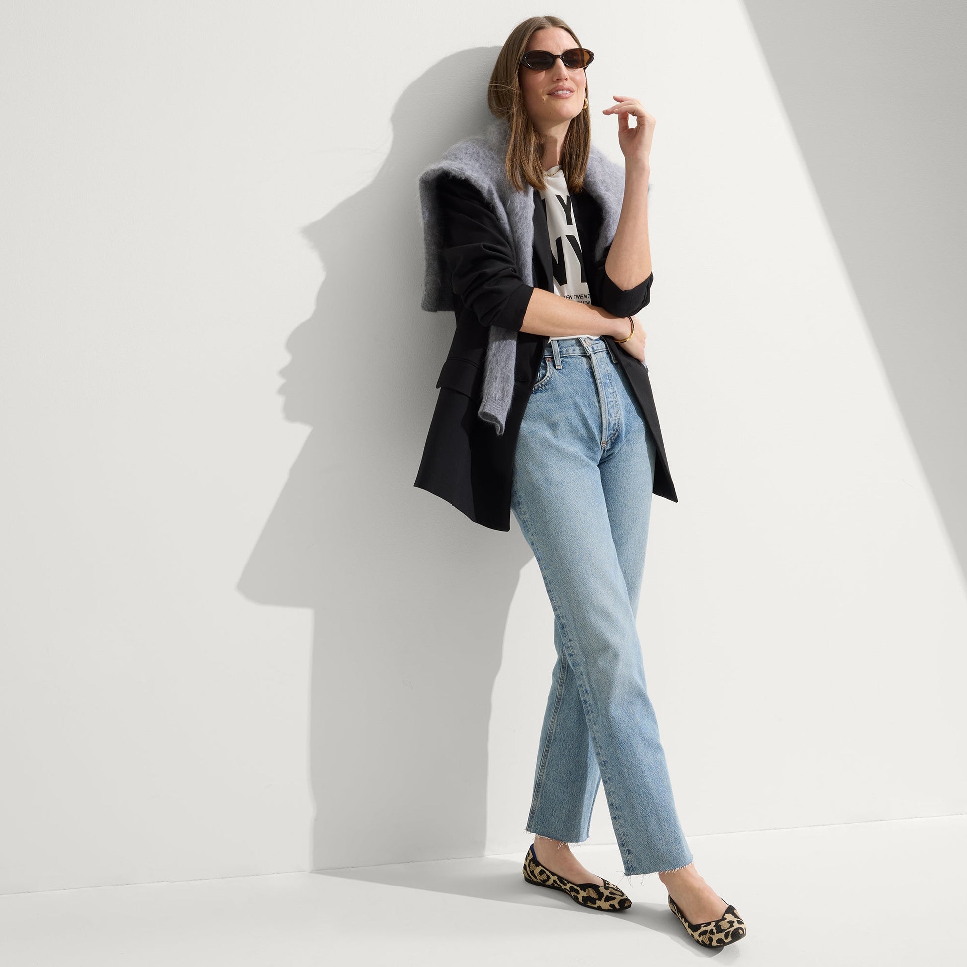 - Soft, flexible upper in cream and black leopard print.