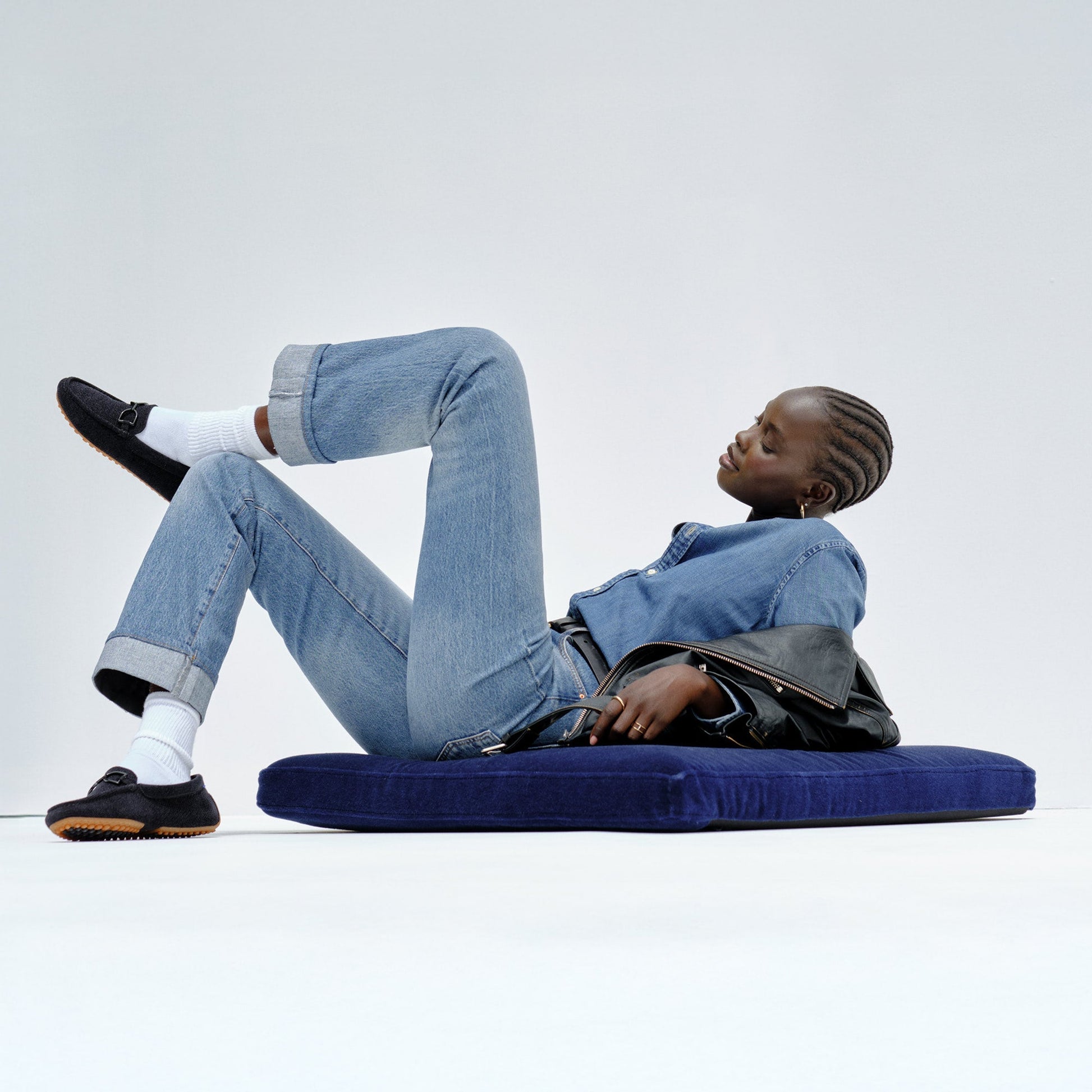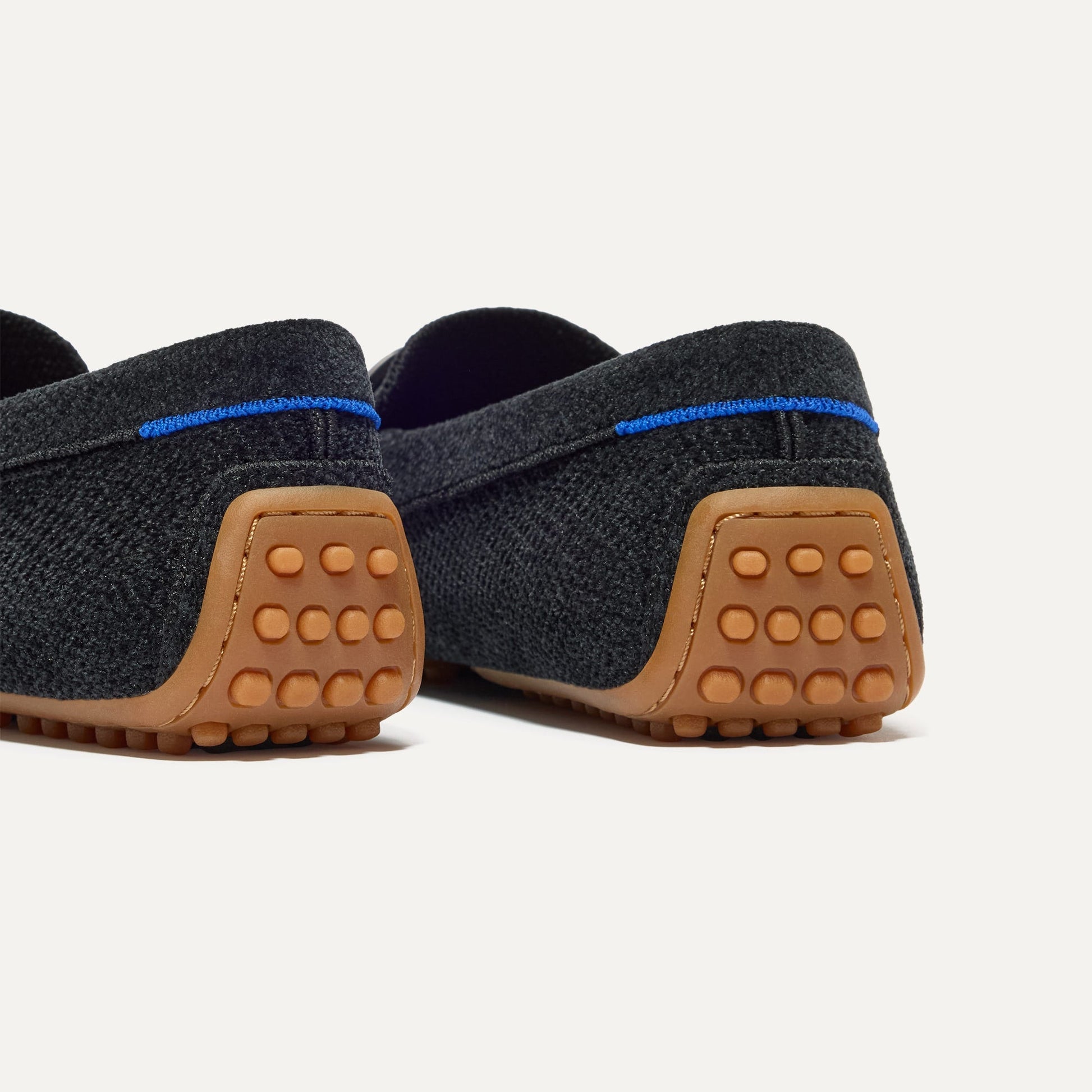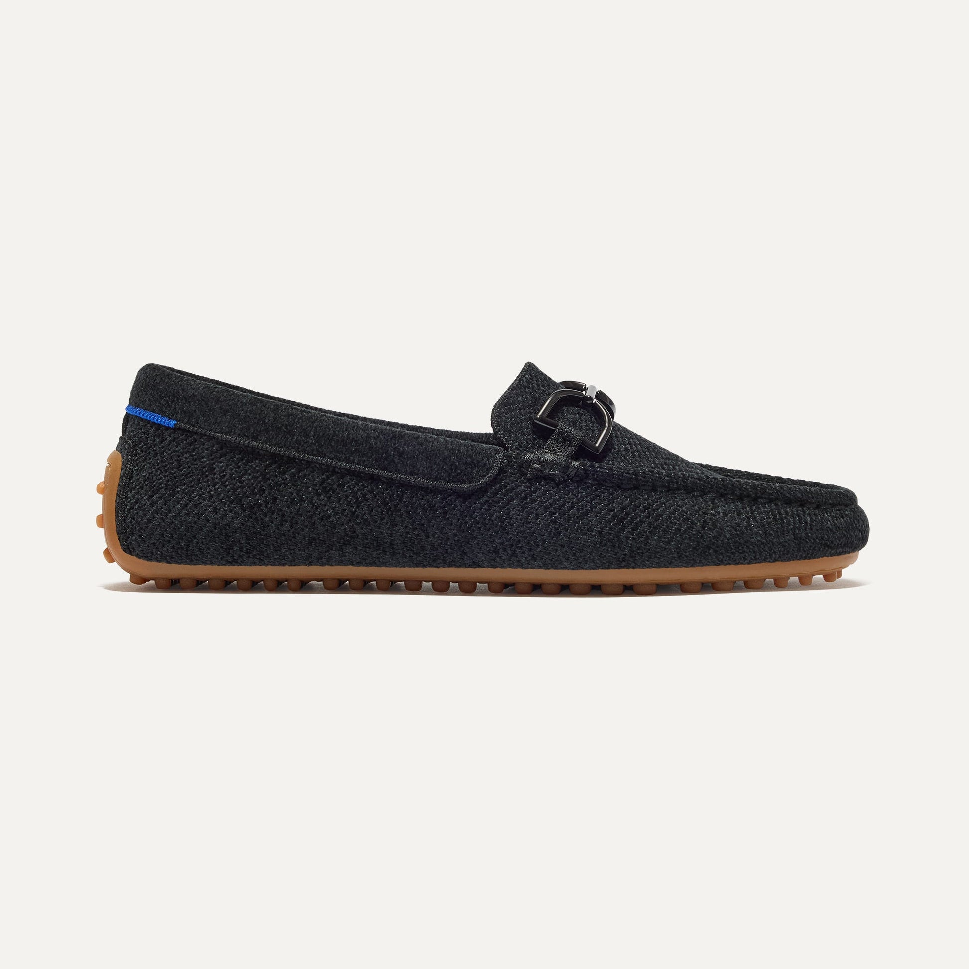 - Soft, flexible upper in black with a tonal hardware signet bit on the vamp.