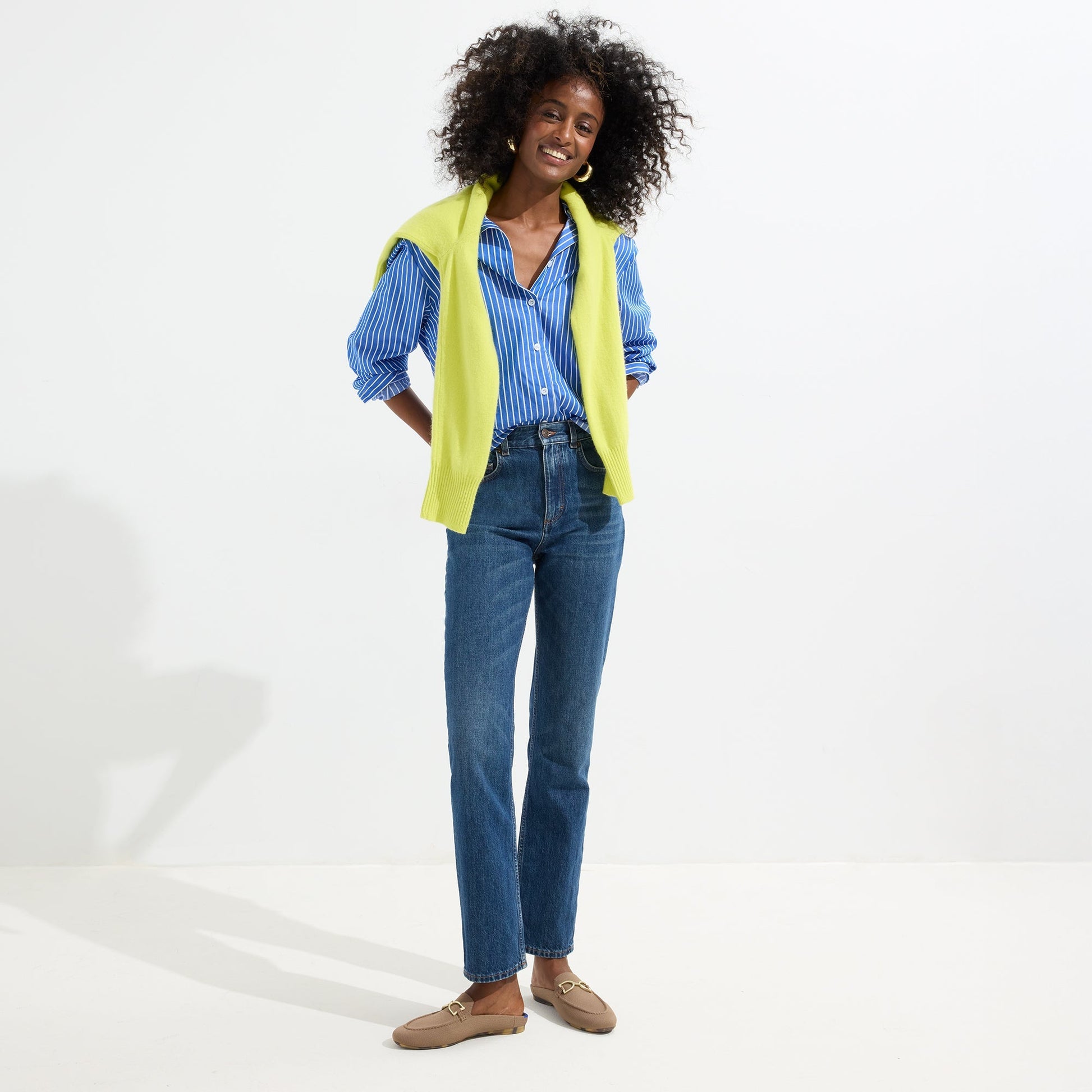 - A gold hardware signet bit on the vamp adds a luxe touch.