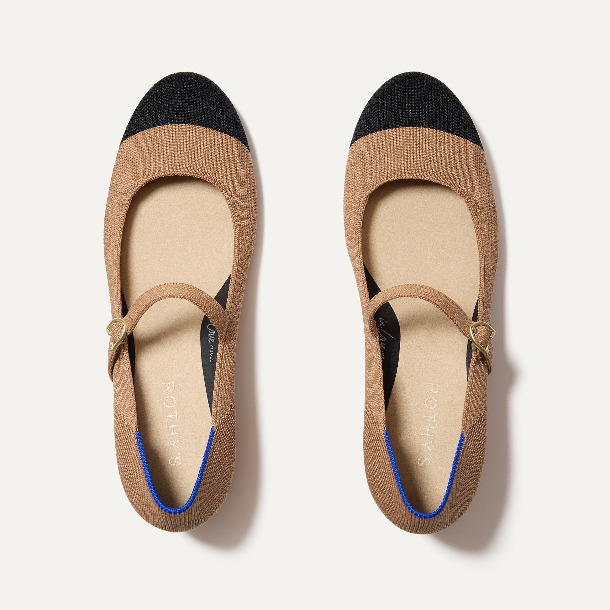 - Premium knit upper in camel with a black captoe, with a smooth shape and rounded toebox.